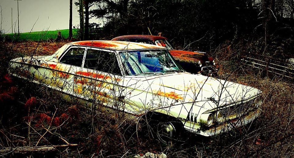 Along a curve on a bendy Georgia highway, where the land lies like a crumpled blanket, rests a ’63 Ford Galaxie 500. Beside that is a ’53 Chevrolet Biscayne. Toccoa, 85 miles north of Atlanta.