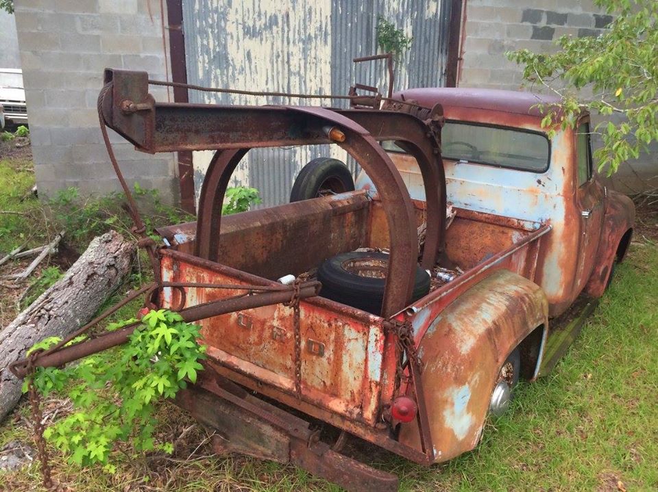 And, because it was the toughest machine Ford built in 1956, this F-100 did it all — ithe breakdowns, the Saturday-night drunks, the joyriders. Now it rests in a weedy lot near Soperton, 150 miles southeast of Atlanta.